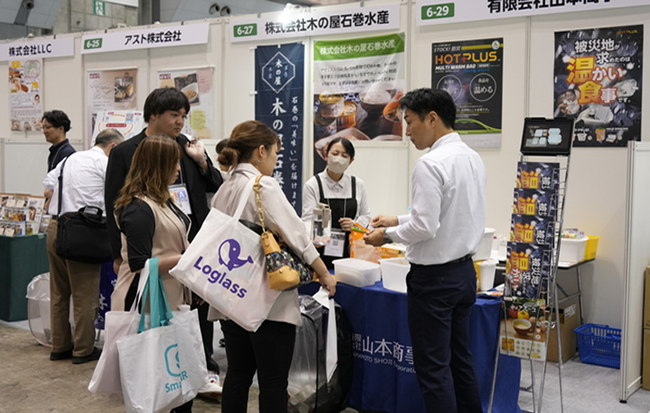 非常食を扱う計13社が各社商品を紹介し、実際に試食・試飲しながら導入を比較できるコーナー。多くの方が楽しみながら検討を重ねる様子が見受けられました。